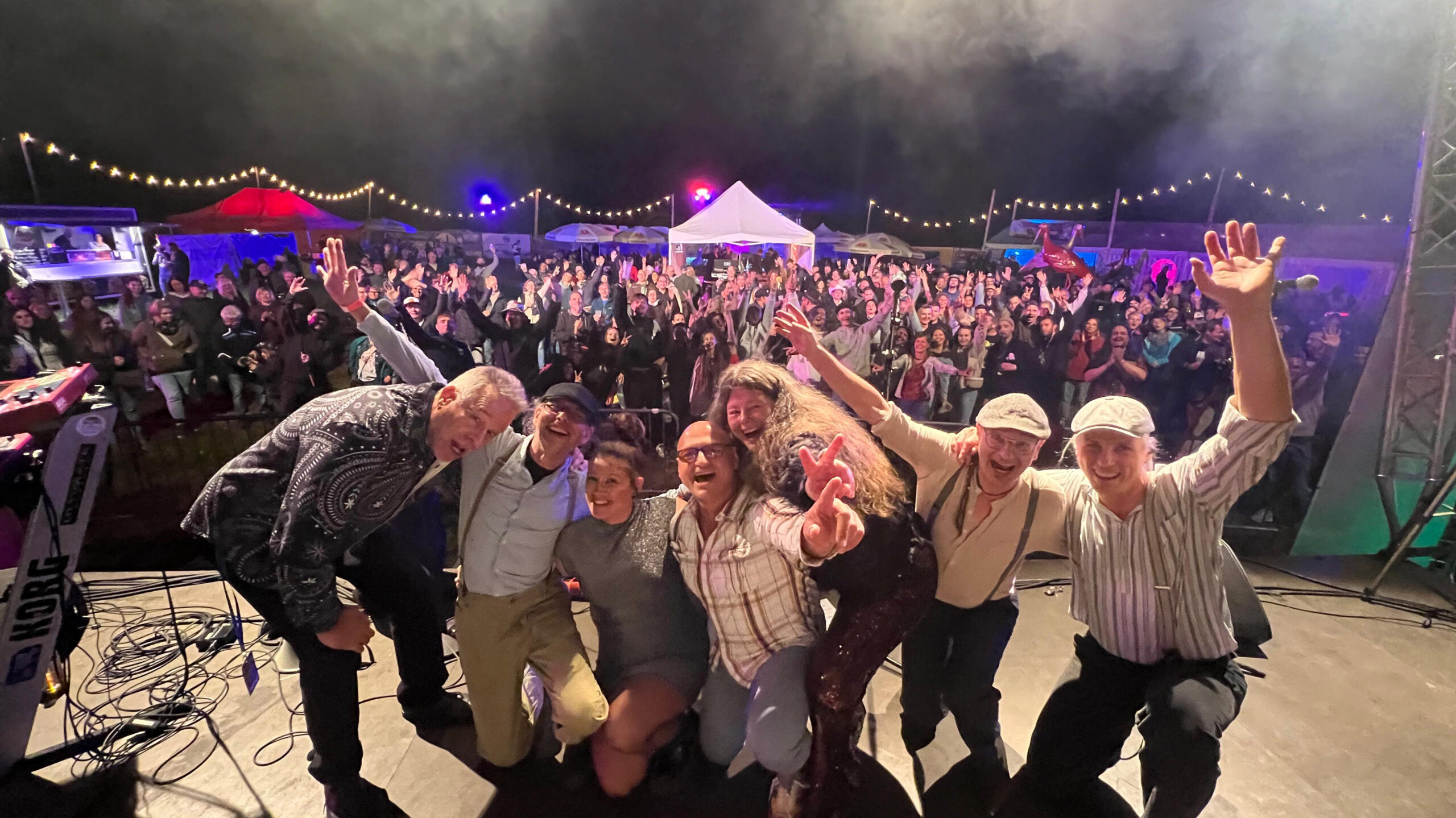 Auf diesem Weg hat sich das Mobil jetzt mit all seinem Inhalt auf dem Melting-Pot-Plaza sesshaft gemacht, wo wir von unserem Drummer mit jeder Menge Groove und allem was Krach macht perfekt versorgt werden.